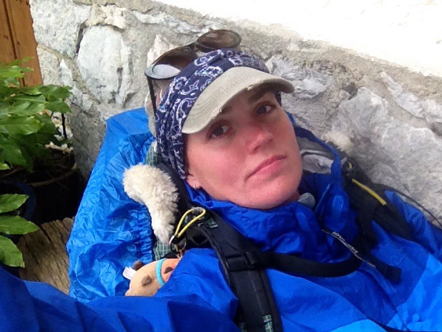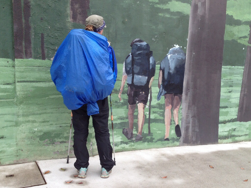 Most of the trail was road walking today. Either the insoles are working or my feet are toughening up because it didn’t bother me as much as it has. My right knee has flared up tonight though and my lower back is giving me its usual grief, so Barbie if I make it to 80 I won’t be going anywhere either with my creaky joints! The rain started at about 11am and didn’t give up the rest of the day. I am SO incredibly thankful that I invested in rain gear despite my grumbling about the price of my Salomon rain pants. These pants are magical compared to what I had on the PCT. My the lessons I’ve learned since April last year. Even the latex gloves over my 1 euro fleece gloves is working a treat!